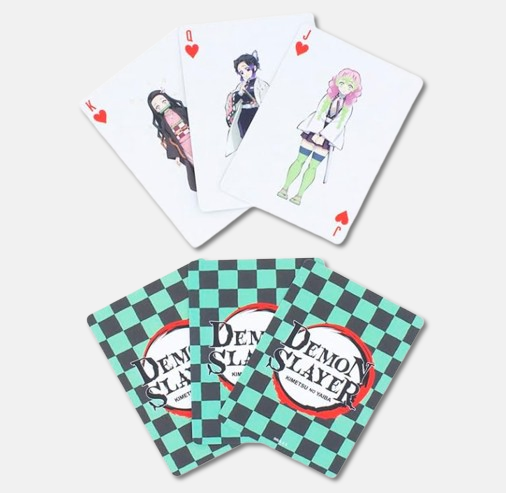 Baraja de cartas con personajes de Demon Slayer, ideal para juegos de viaje.