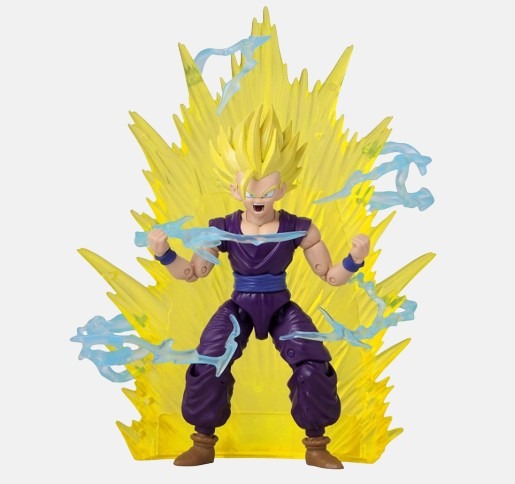 Figura de Gohan en Super Saiyan 2, con una altura de 16.5 cm y parte de la colección Dragon Stars. La figura está diseñada con gran detalle y cuenta con numerosos puntos de articulación, permitiendo diversas poses. Incluye accesorios intercambiables que añaden realismo y versatilidad. Ideal para coleccionistas que deseen revivir las icónicas batallas de la saga de Cell.