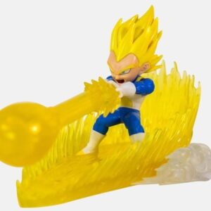 Figura articulada de Vegeta SSJ con alta fidelidad al anime y accesorios para poses dinámicas.